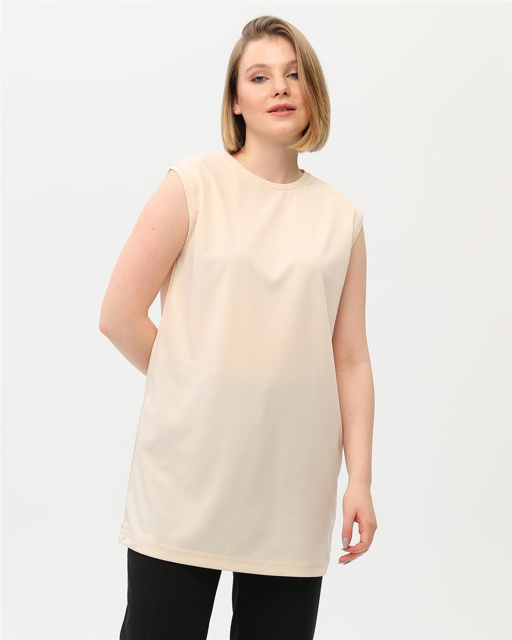 Sude Bisiklet Yaka Kolsuz Sade Basic Bluz - 06038.023 - Krem
